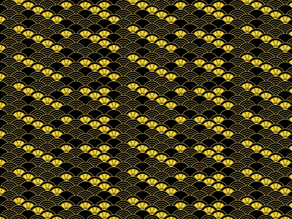 Gold and Black Chrysanthemum and Wave Crest Pattern Background