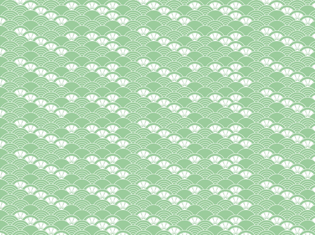 White and Green Chrysanthemum and Wave Crest Pattern Background