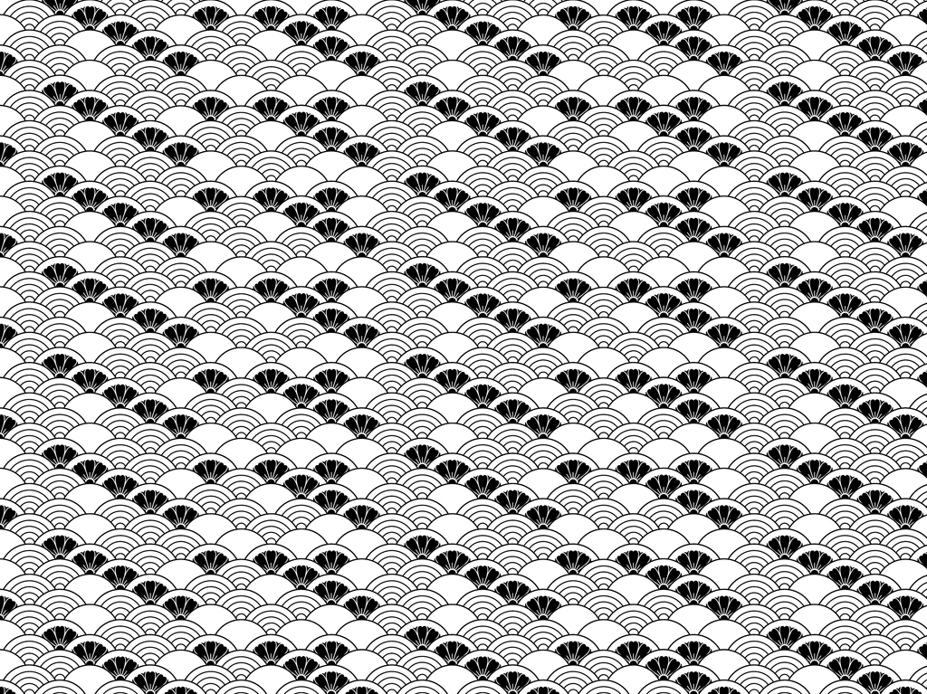 Black and White Chrysanthemum and Wave Crest Pattern Background