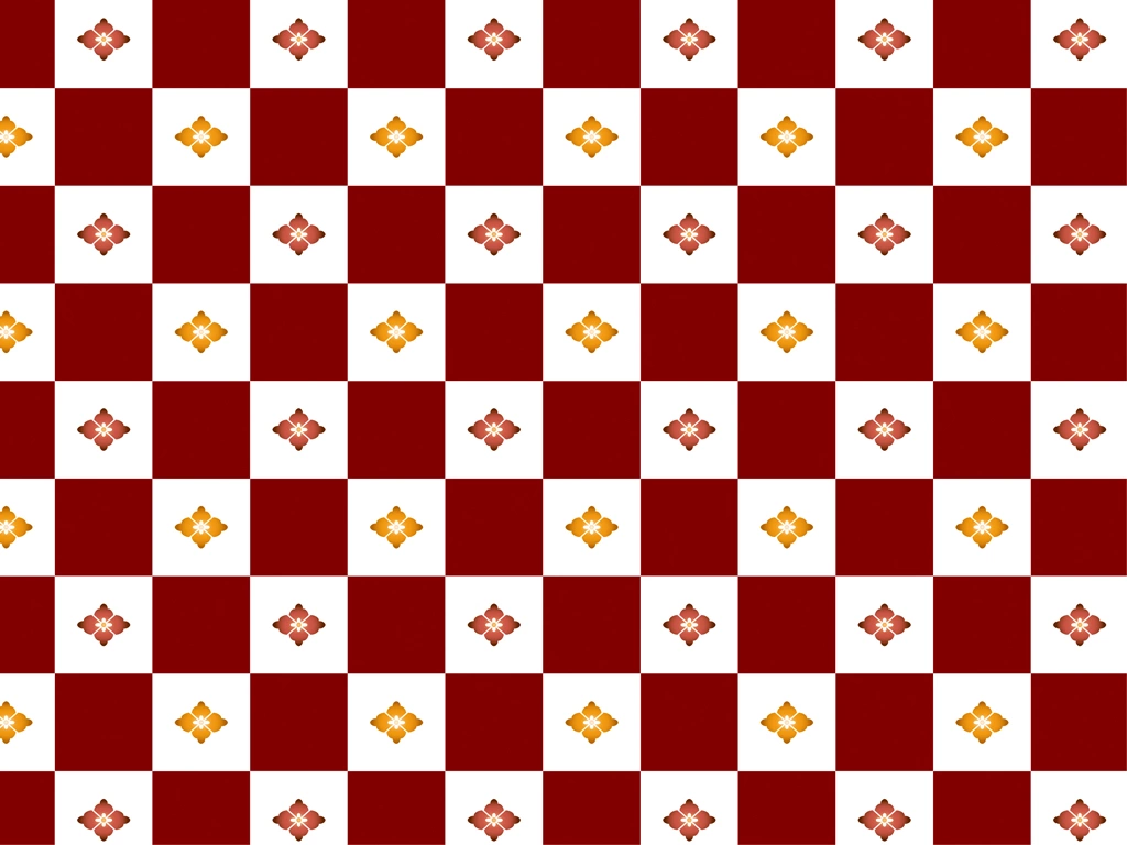 Red, Orange, Beige and White Hanabishi with Checkered Pattern Background