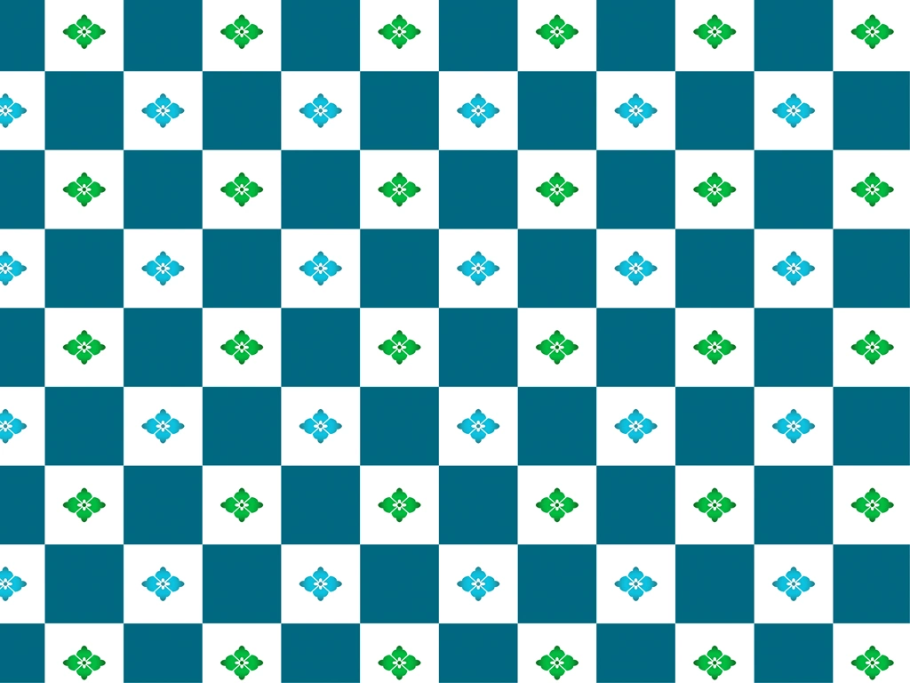 Green, Light Blue, Blue-Green and White Hanabishi with Checkered Pattern Background