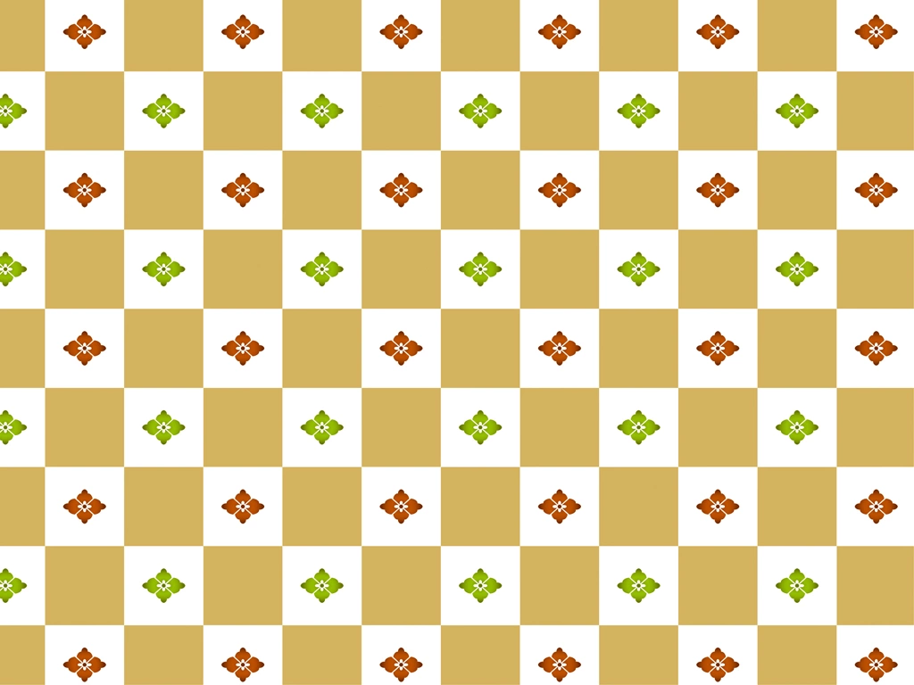 Red, Yellow-Green, Beige and White Hanabishi with Checkered Pattern Background