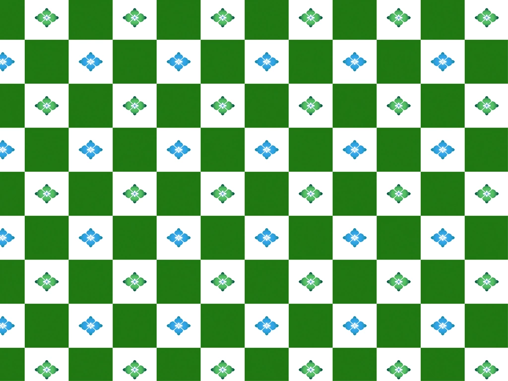 Green, Light Blue and White Hanabishi with Checkered Pattern Background