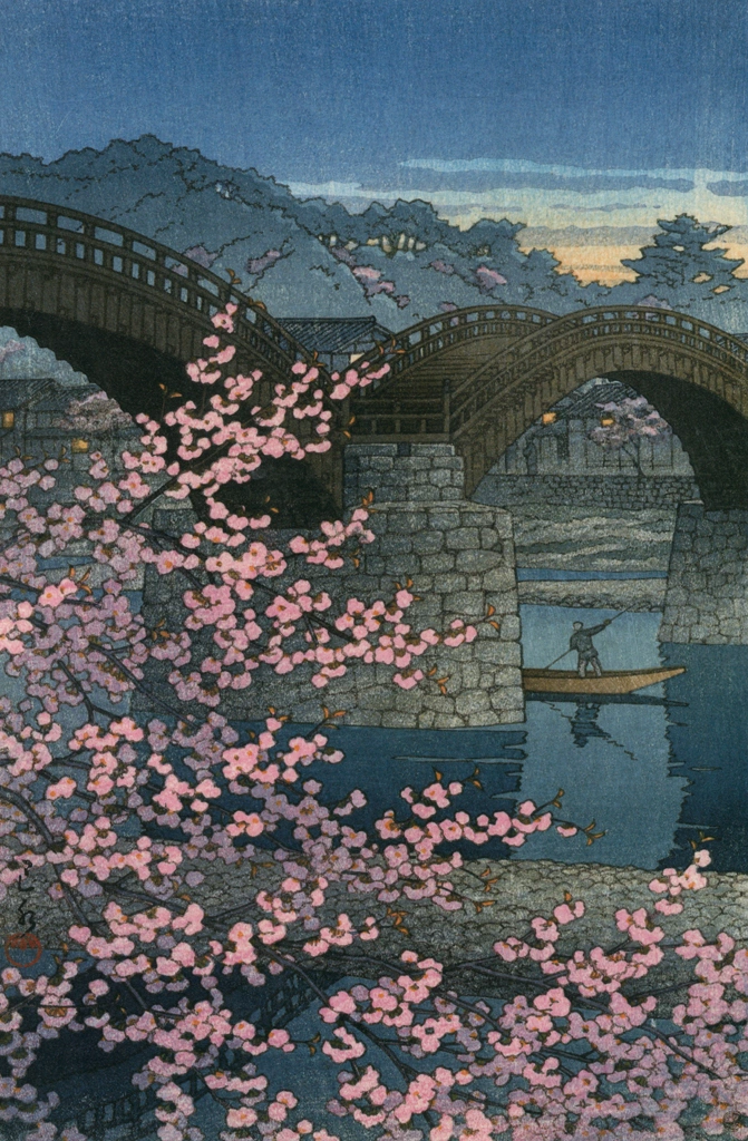 "Spring Evening at the Kintai Bridge" by Hasui Kawase (1947)