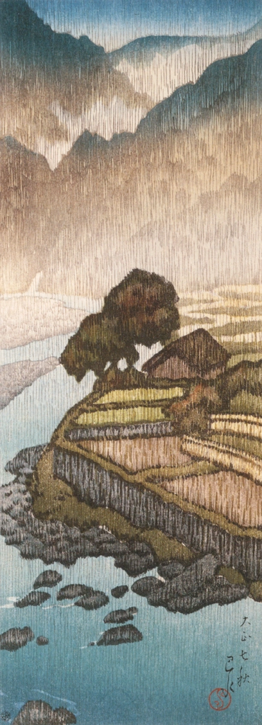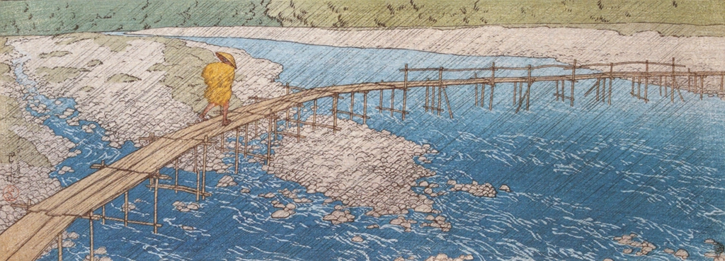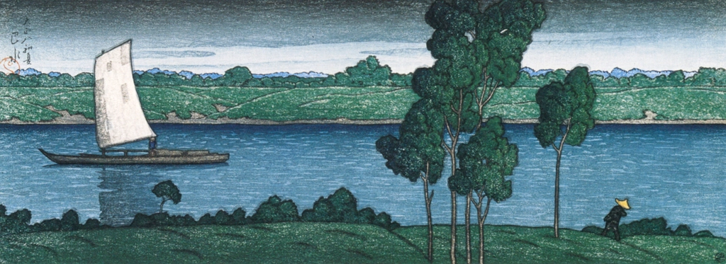 "Souvenirs of My Travels, 1st Series: The Mishimagawa River, Mutsu" by Hasui Kawase (1919)