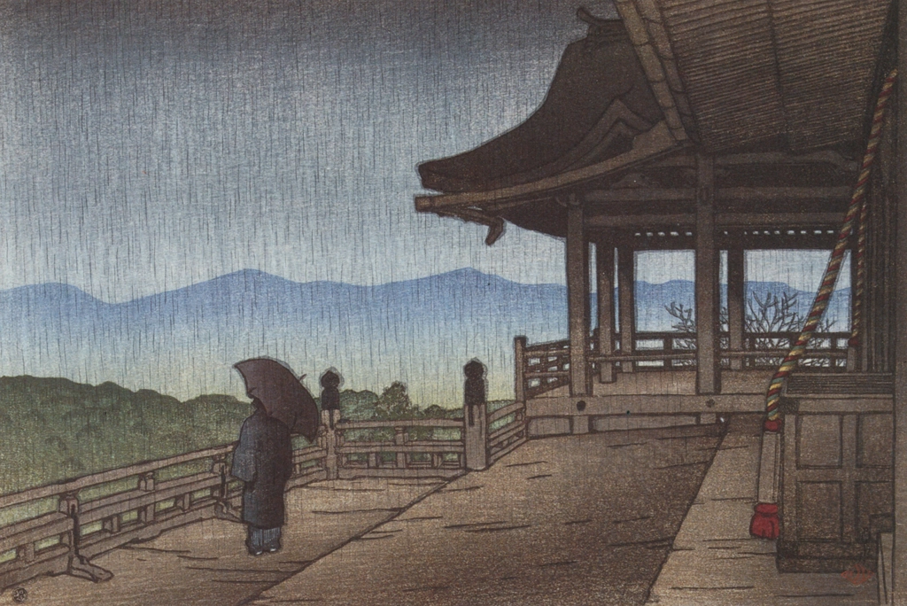 "Souvenirs of My Travels, 2nd Series: Kiyomizudera Temple in the Rain" by Hasui Kawase (1921)