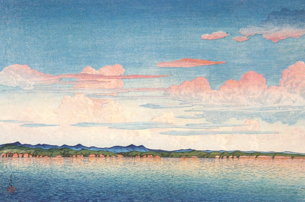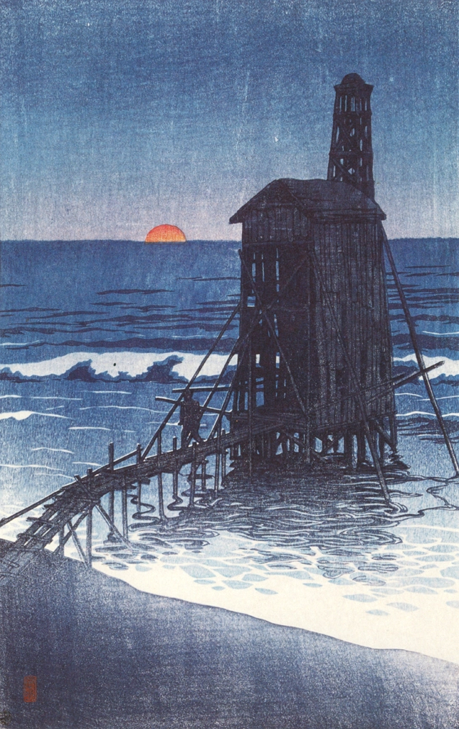 "Setting Sun (Gōmoto, Echigo)" by Hasui Kawase (1921)