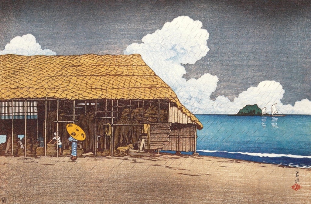 "Souvenirs of My Travels, 2nd Series: Seaside Cottage (Etchu-Himi)" by Hasui Kawase (1921)