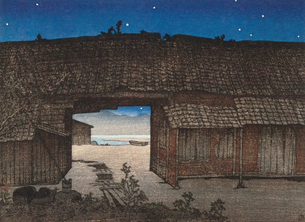 "Selected Views of Japan: No. 5, Karatsu (Ruins of Rice Warehouses)" by Hasui Kawase (1922)