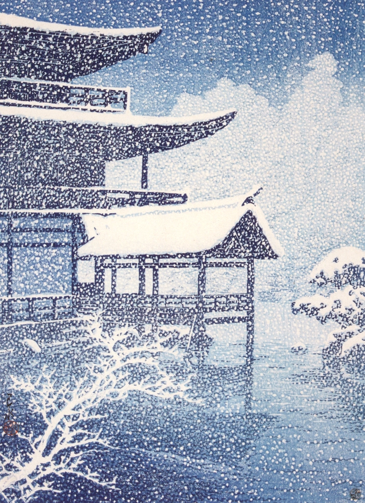 "Selected Views of Japan: No. 17, Kinkakuji Temple in the Snow" by Hasui Kawase (1922)