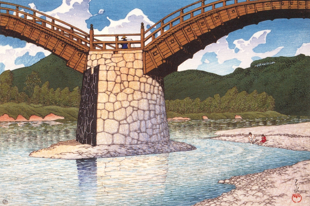 "Souvenirs of My Travels, 3rd Series: Kintaikyo Bridge, Suo (1924)" by Hasui Kawase (1924)