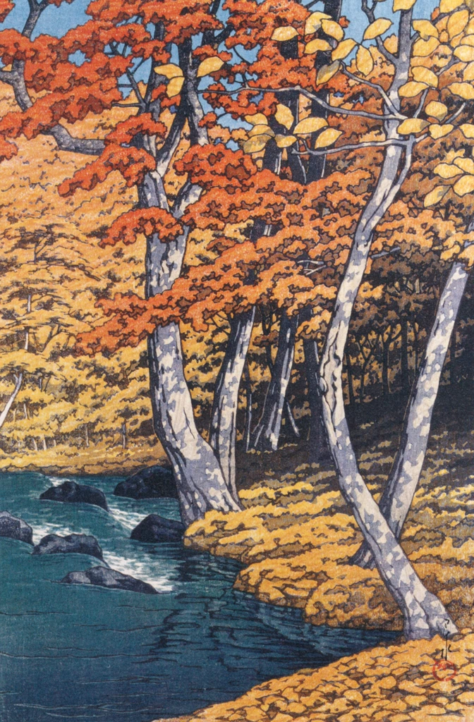 Download Button   "Japanese Sceneries, Eastern Japan Series: Autumn at Oirase" by Hasui Kawase (1933)