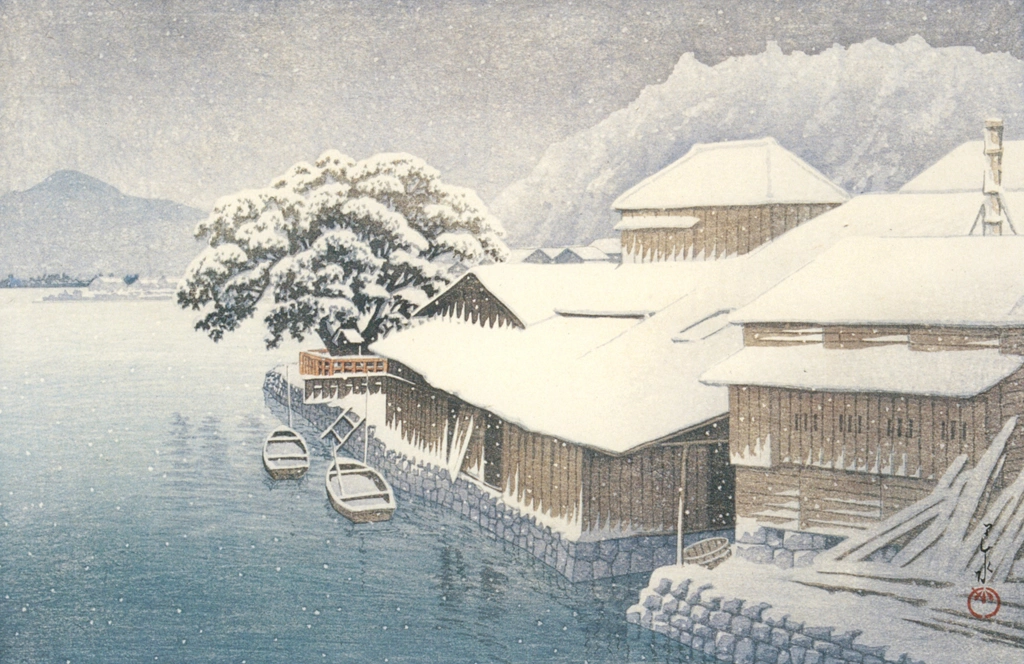 Download Button   "Japanese Sceneries, Eastern Japan Series: Ishinomaki in Snow" by Hasui Kawase (1935)