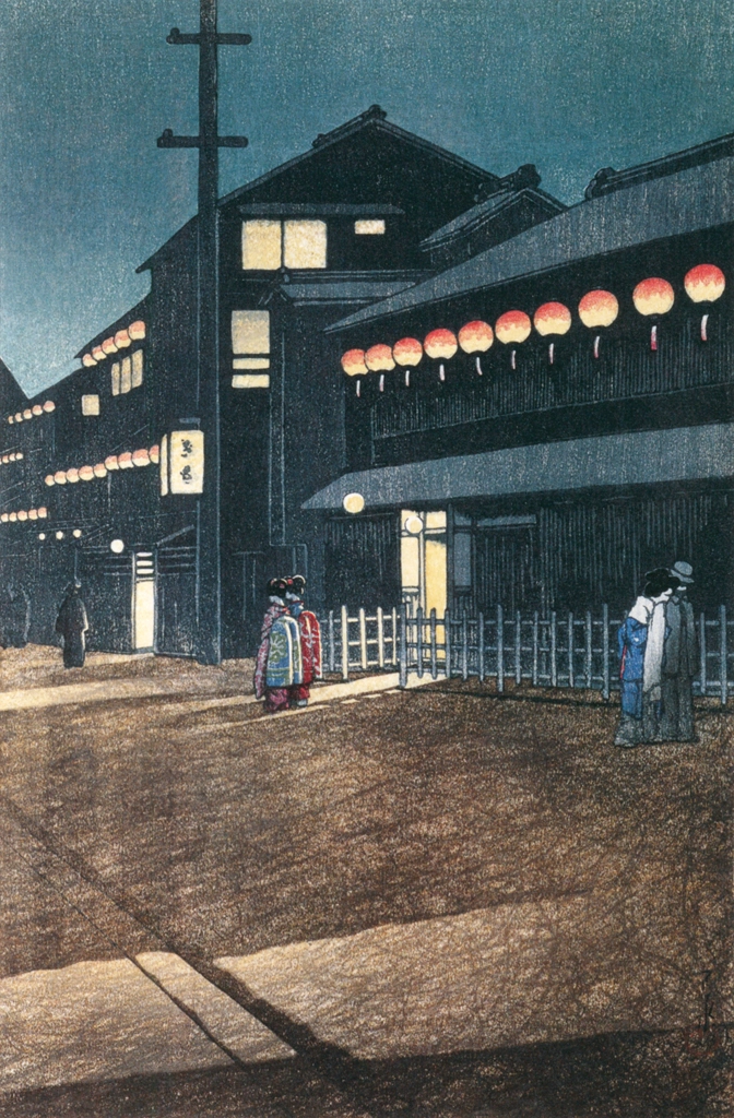 Download Button   "Japanese Sceneries II, Kansai Series: Evening at Soemon Town, Osaka" by Hasui Kawase (1933)