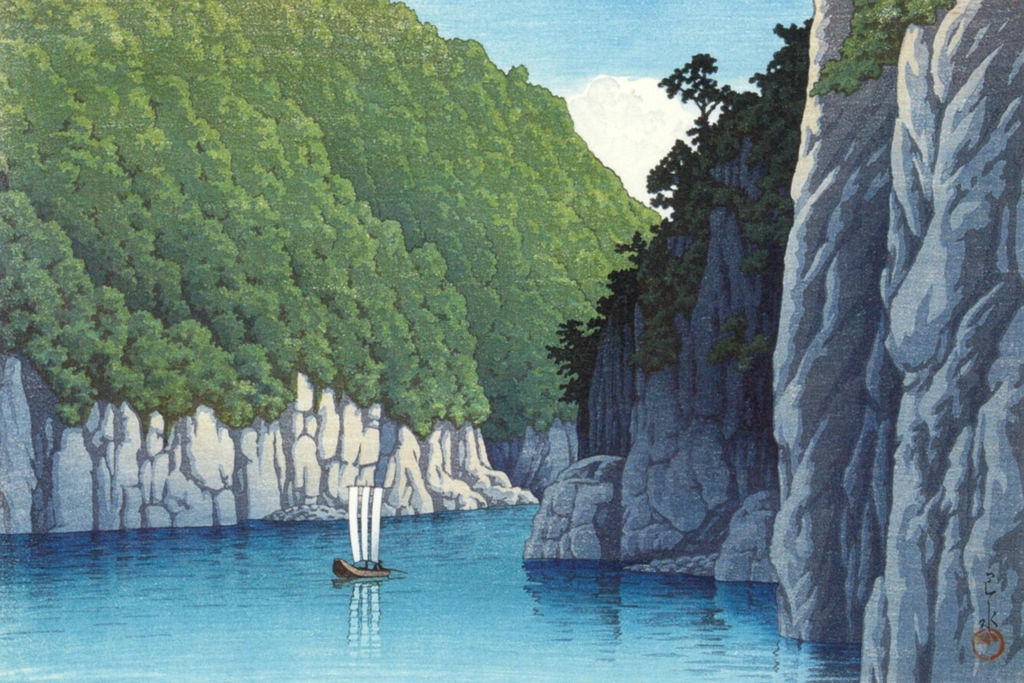 "Japanese Sceneries II, Kansai Series: Dorokyo Gorge, Kii Province" by Hasui Kawase (1941)
