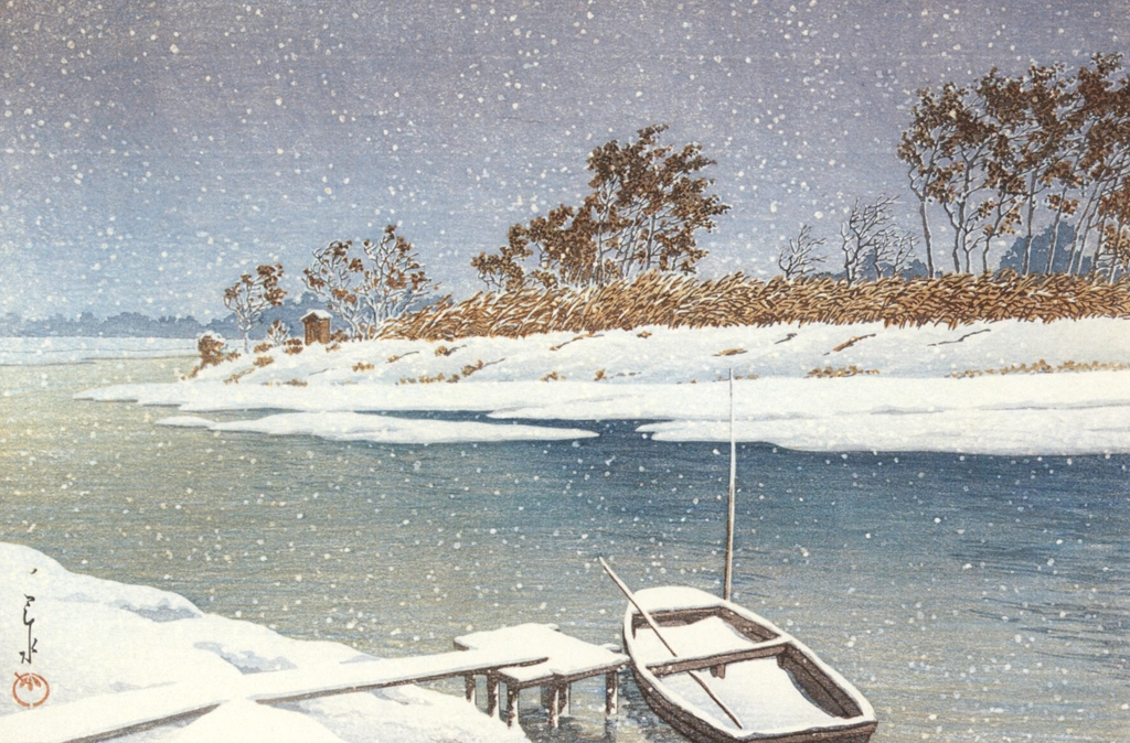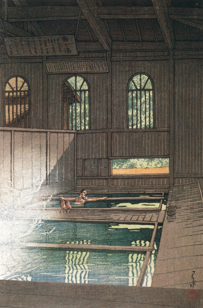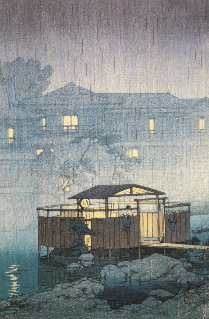 "The Shuzenji Hot Springs in Rain" by Hasui Kawase (1933)