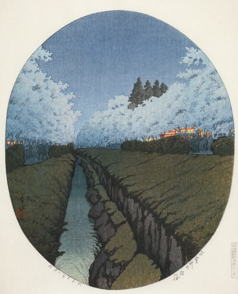 "Night View of Cherry Blossoms at Koganei" by Hasui Kawase (1935)