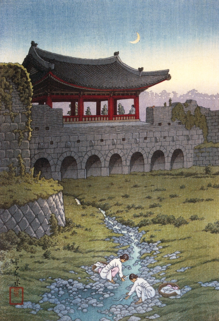 "Eight Views of Korea: Hwahongmun Gate, Suwon" by Hasui Kawase (1939)