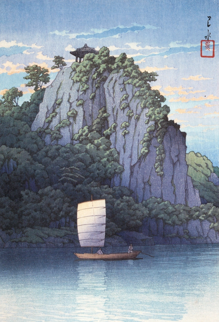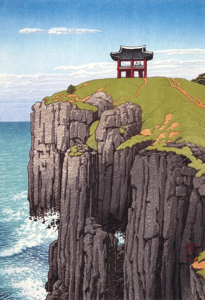 "Eight Views of Korea: Puyo Nakhwa Cliff" by Hasui Kawase (1939)