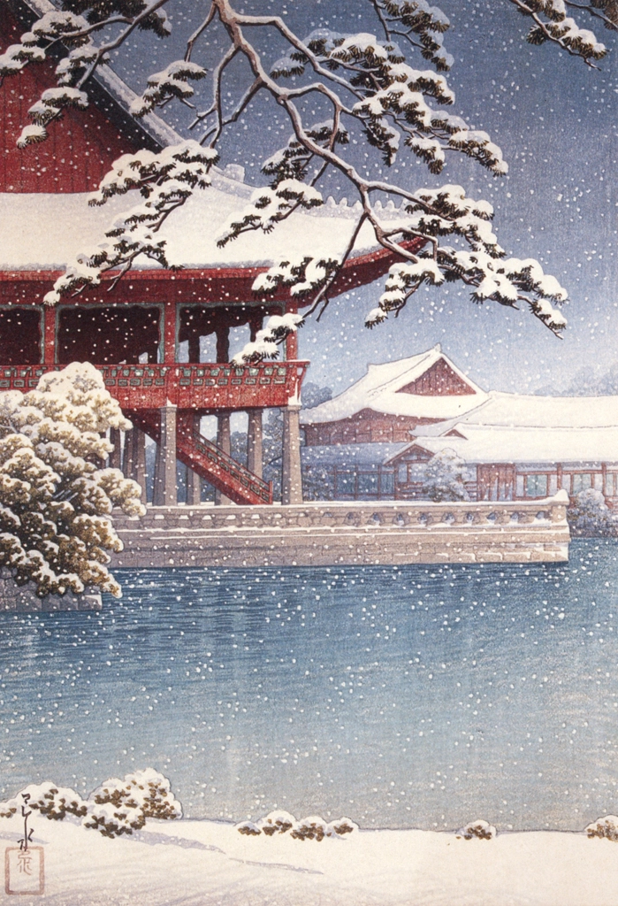 "Eight Views of Korea: Gyeonghoeru Pavilion, Gyeongbokgung Palace" by Hasui Kawase (1939)