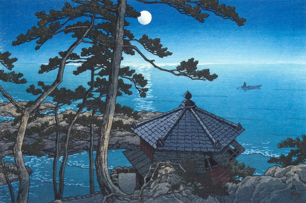 Download Button   "Moon at Goura, Ibaragi" by Hasui Kawase (1952)