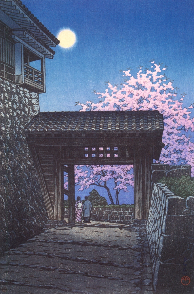 Download Button   "Bright Moon at Matsuyama Castle" by Hasui Kawase (1953)
