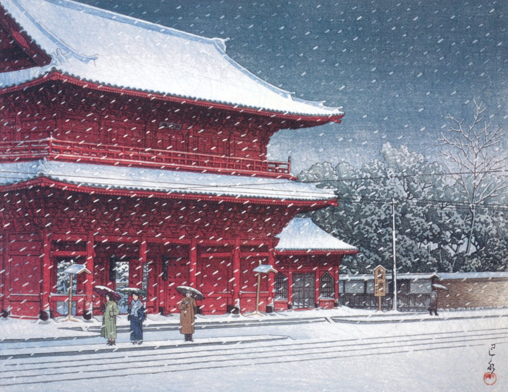 Download Button   "Snow at Zojoji Temple" by Hasui Kawase (1953)
