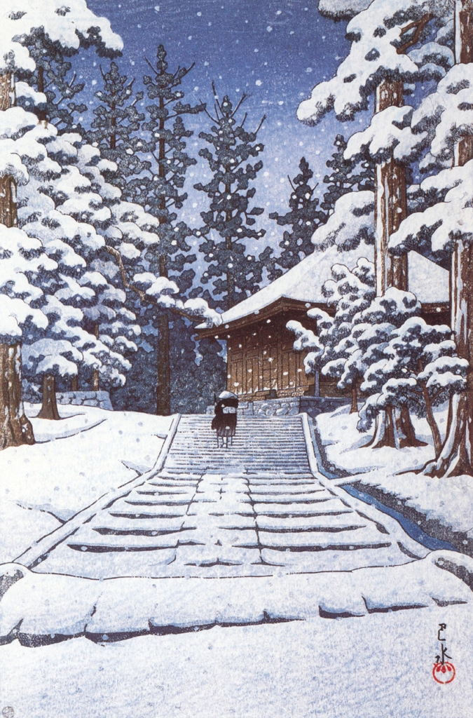 Download Button   "Konjikido in Snow, Hiraizumi" by Hasui Kawase (1957)