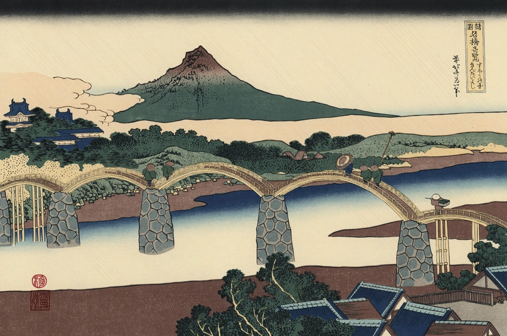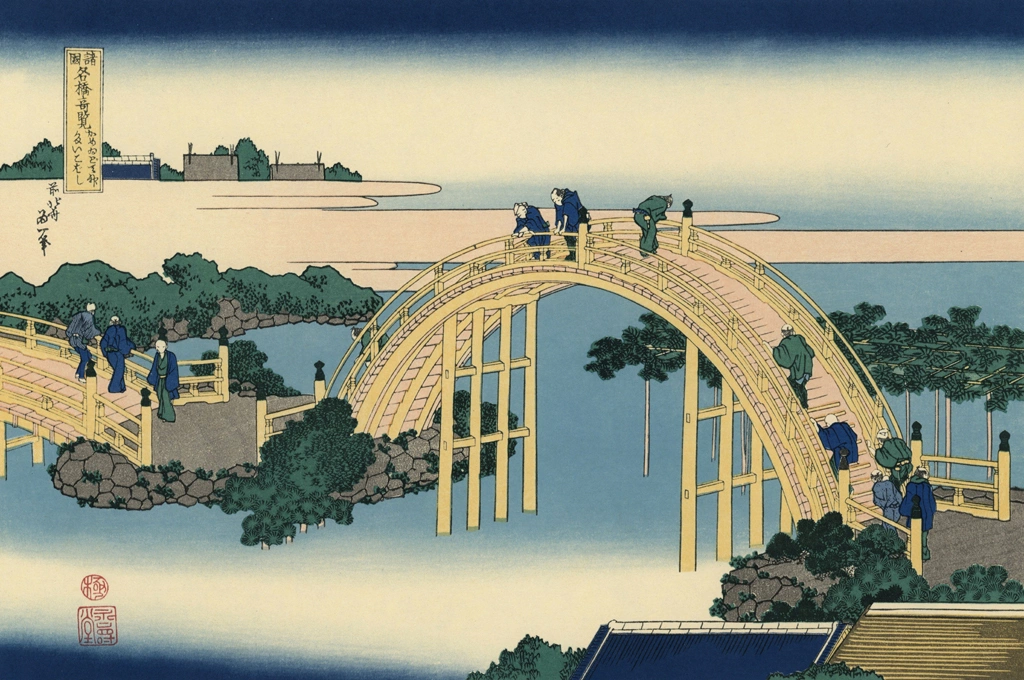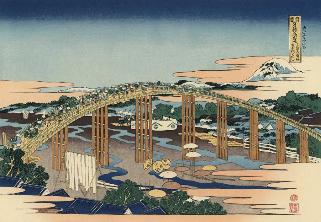 Download Button   "Unusual Views of Famous Bridges in Various Provinces: Kintai Bridge in Suo" by Katsushika Hokusai (circa 1833-34)