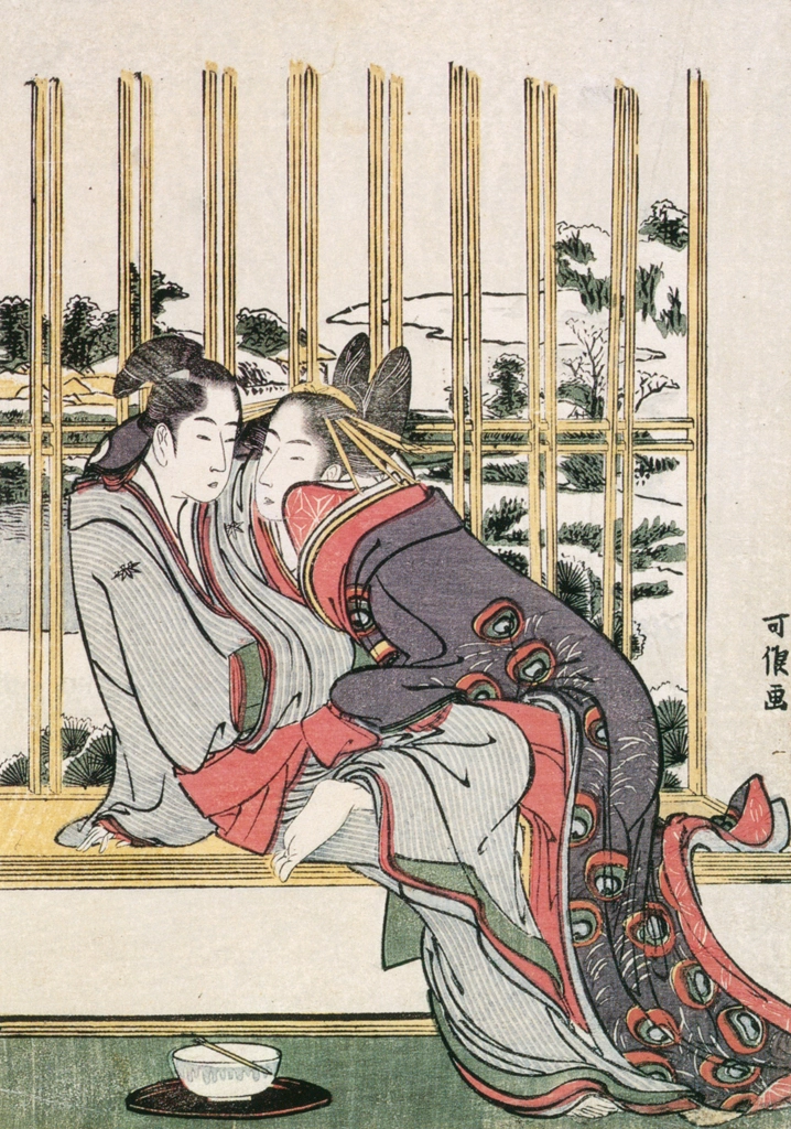 "Evening Glow for Date no Yosaku and Seki no Koman (Eight Views of Tragic Lovers)" by Katsushika Hokusai (1798)