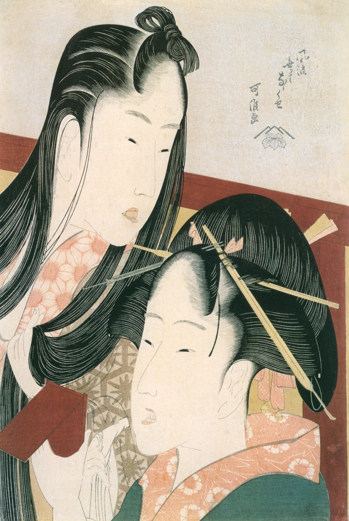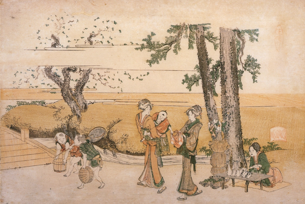"Squeaking a Ground Cherry (Seven Fashionable Useless Habits)" by Katsushika Hokusai