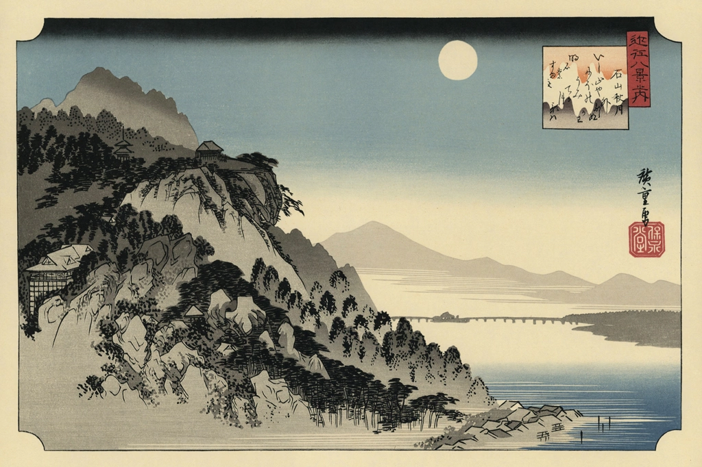 Download Button   "The Eight Views of Ōmi; Autumn Moon at Ishiyama" by Utagawa Hiroshige (c.1834)