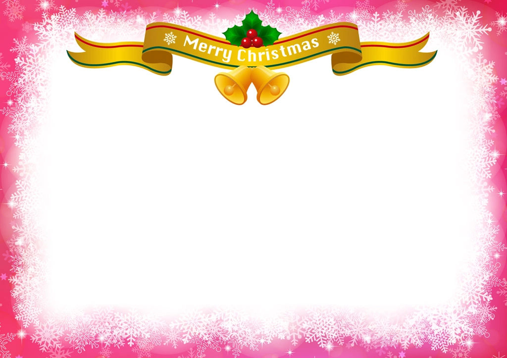 Download Button   ピンク色の雪の結晶とタイトルリボンのクリスマスフレームの背景