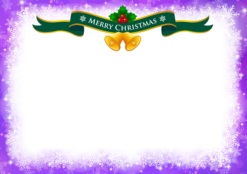 Download Button   紫色の雪の結晶とタイトルリボンのクリスマスフレームの背景