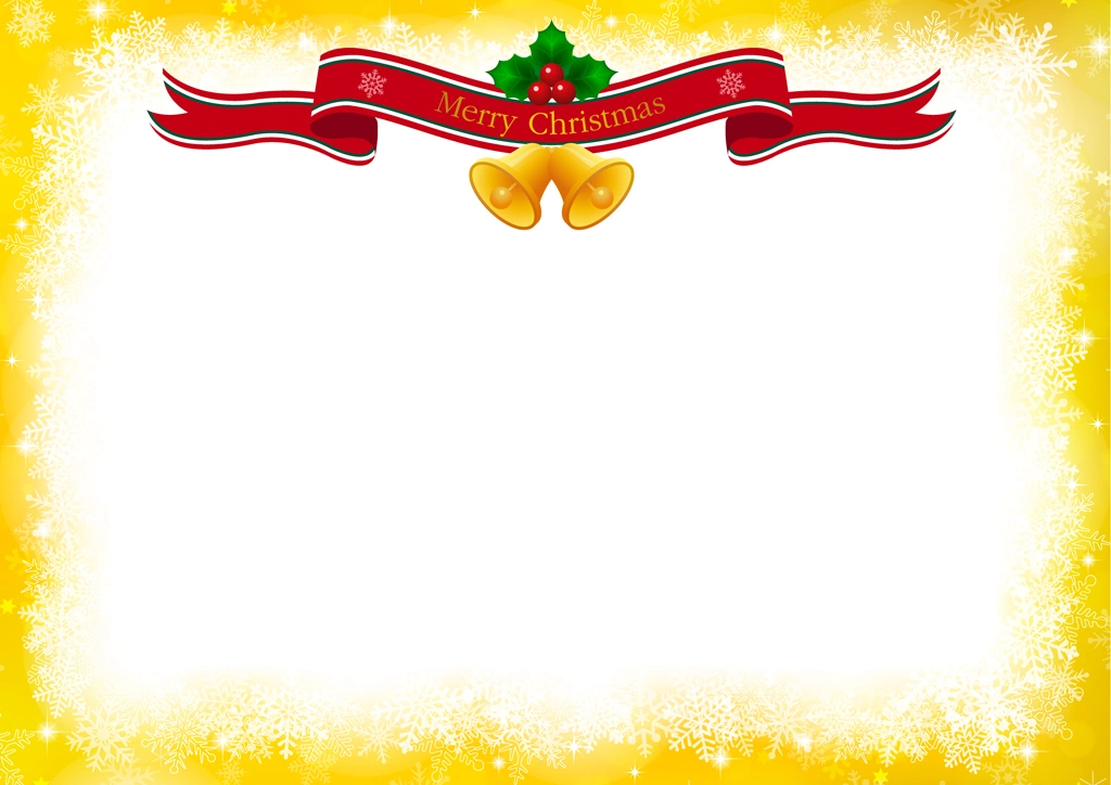 Download Button   黄色の雪の結晶とタイトルリボンのクリスマスフレームの背景