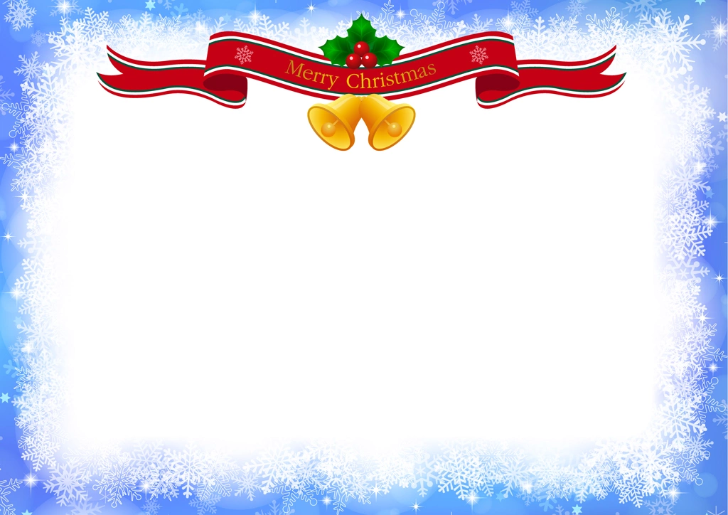 雪の結晶とタイトルリボンのクリスマスフレームの背景イラストとベクター