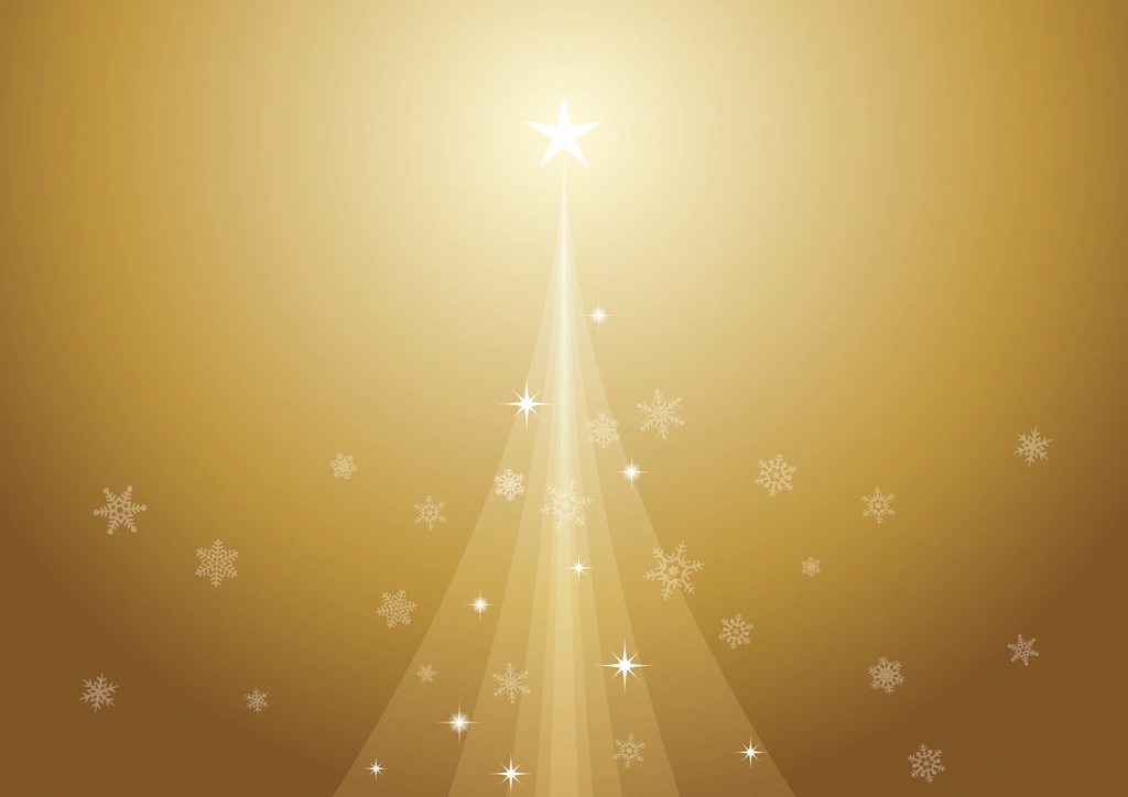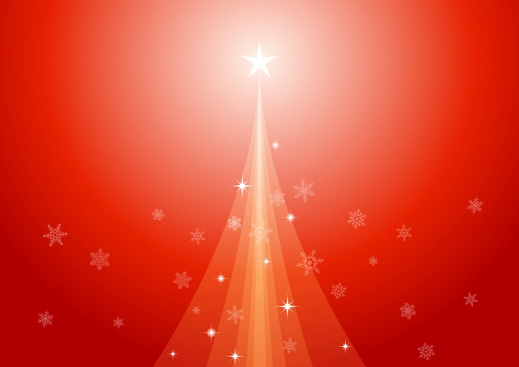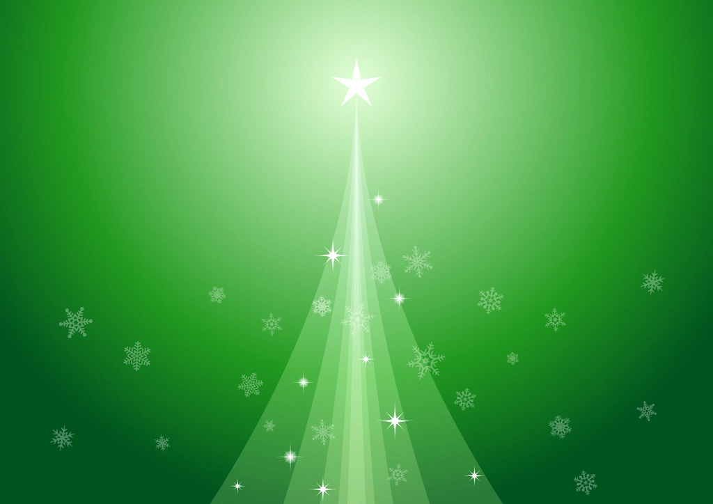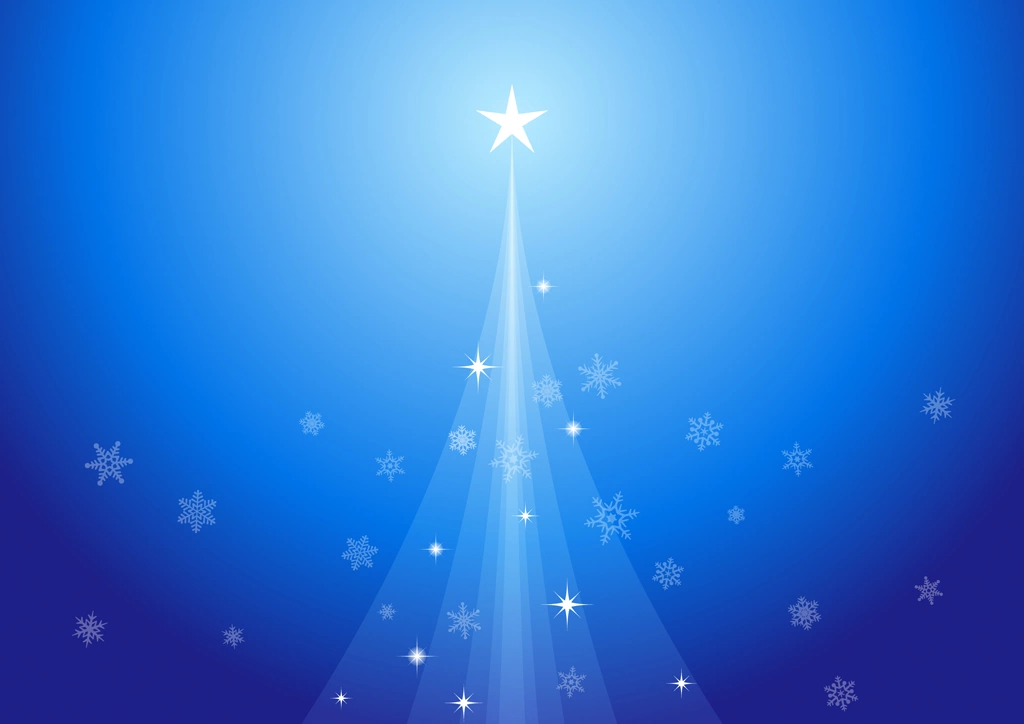 クリスマスツリーと雪片の横型背景のイラストとベクター