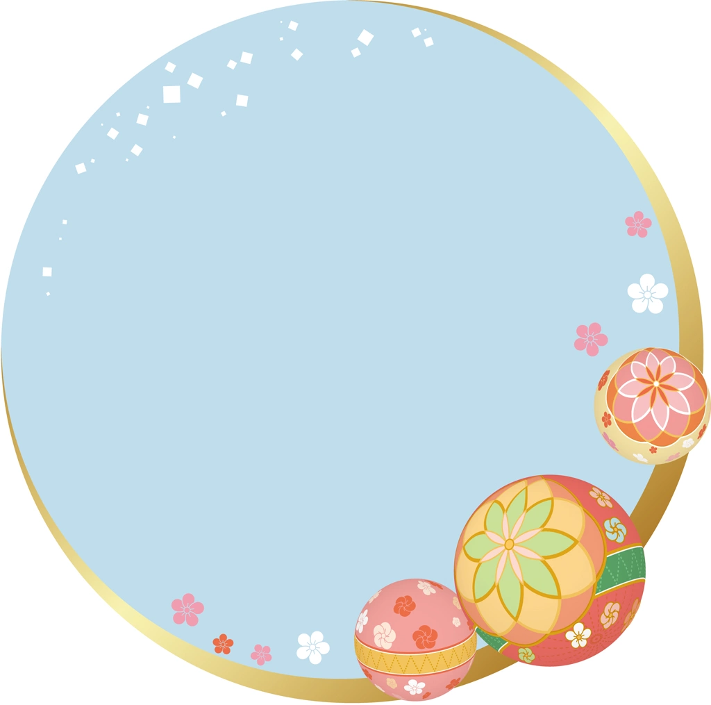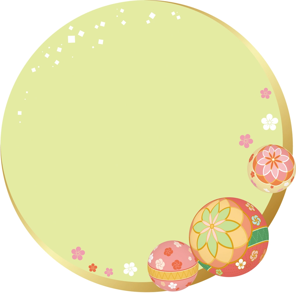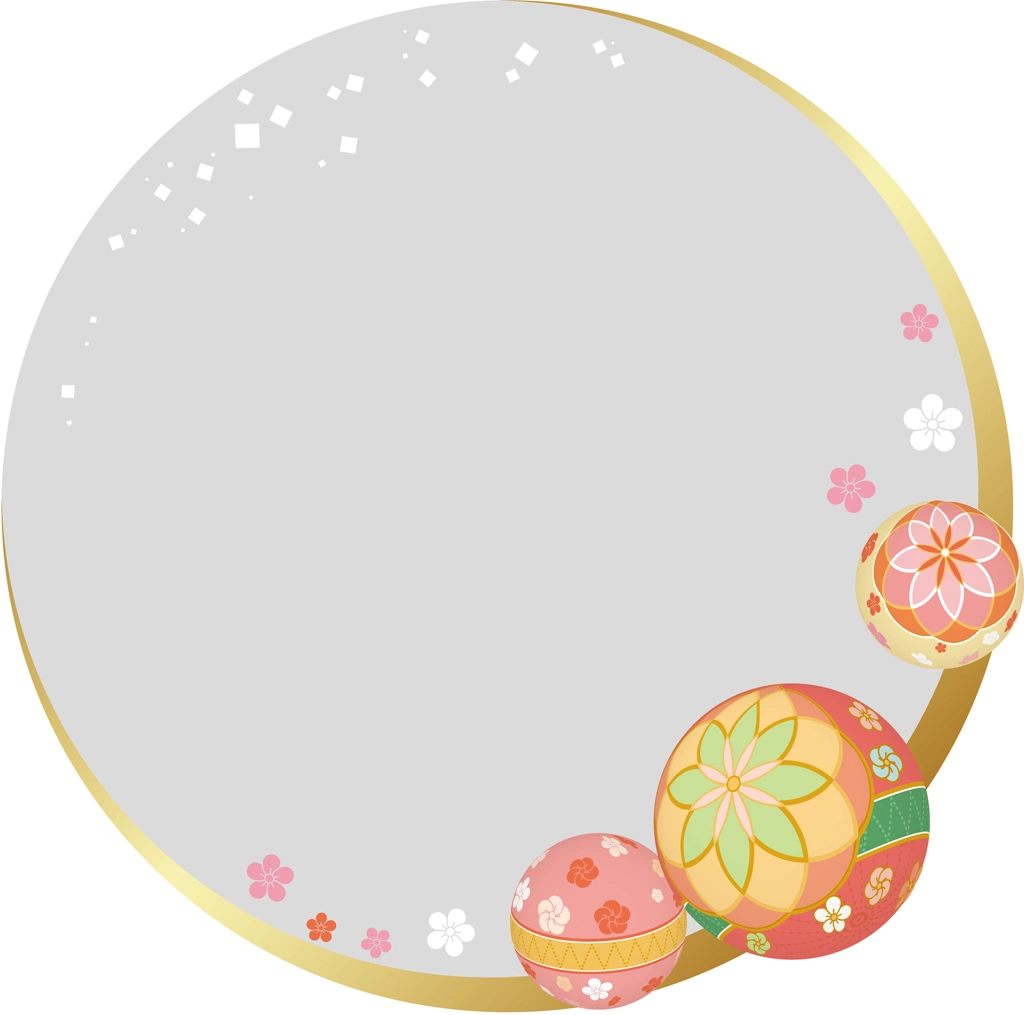 手鞠と和風円形フレームの背景イラストとベクター
