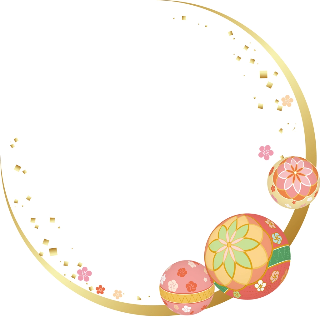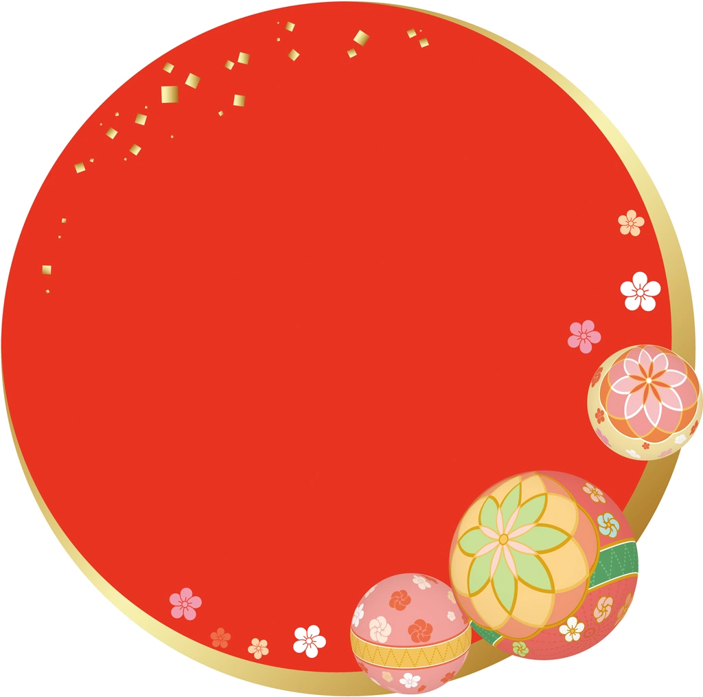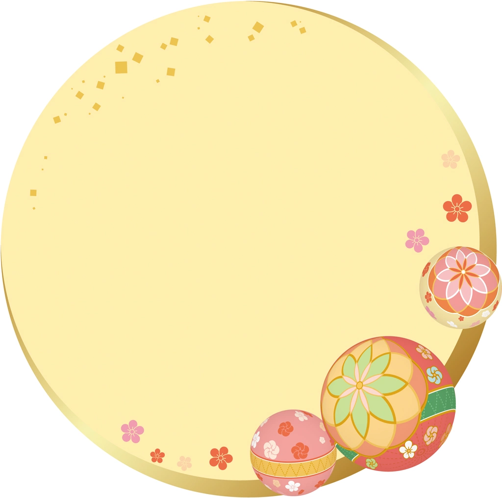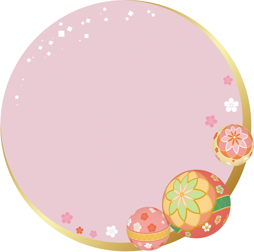 手鞠と和風円形フレームの背景イラストとベクター