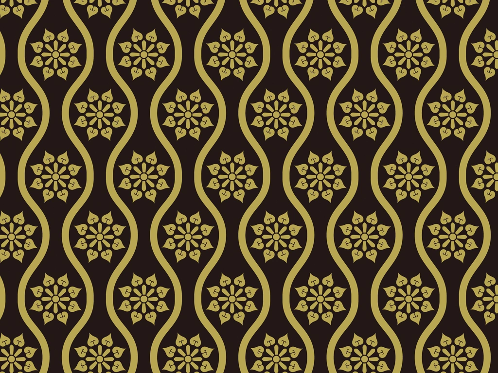 Download Button   金色と黒色の花柄と立涌文様の背景