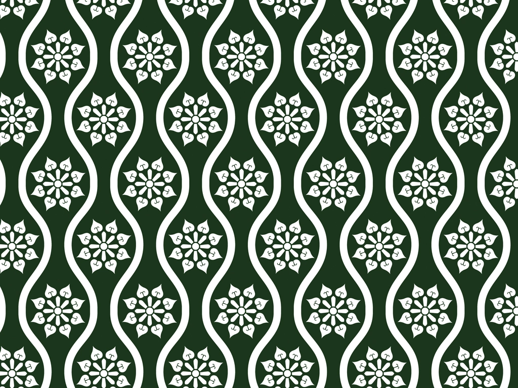 Download Button   白色と緑色の花柄と立涌文様の背景