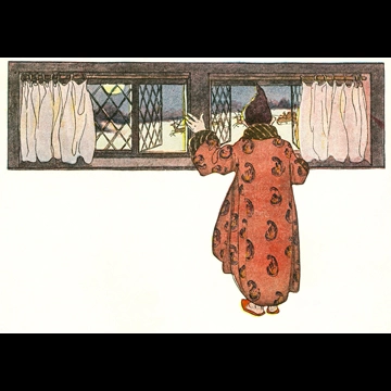 「クリスマスのまえのばん 挿絵 #4 (驚いた私の目に現れたのは、小さなソリと8頭の小さなトナカイだった)」 ジェシー・ウィルコックス・スミス