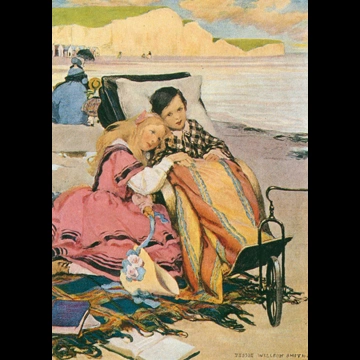 「ブライトンのビーチにいるポール・ジュニアとフローレンス (ドンビー父子)」 ジェシー・ウィルコックス・スミス