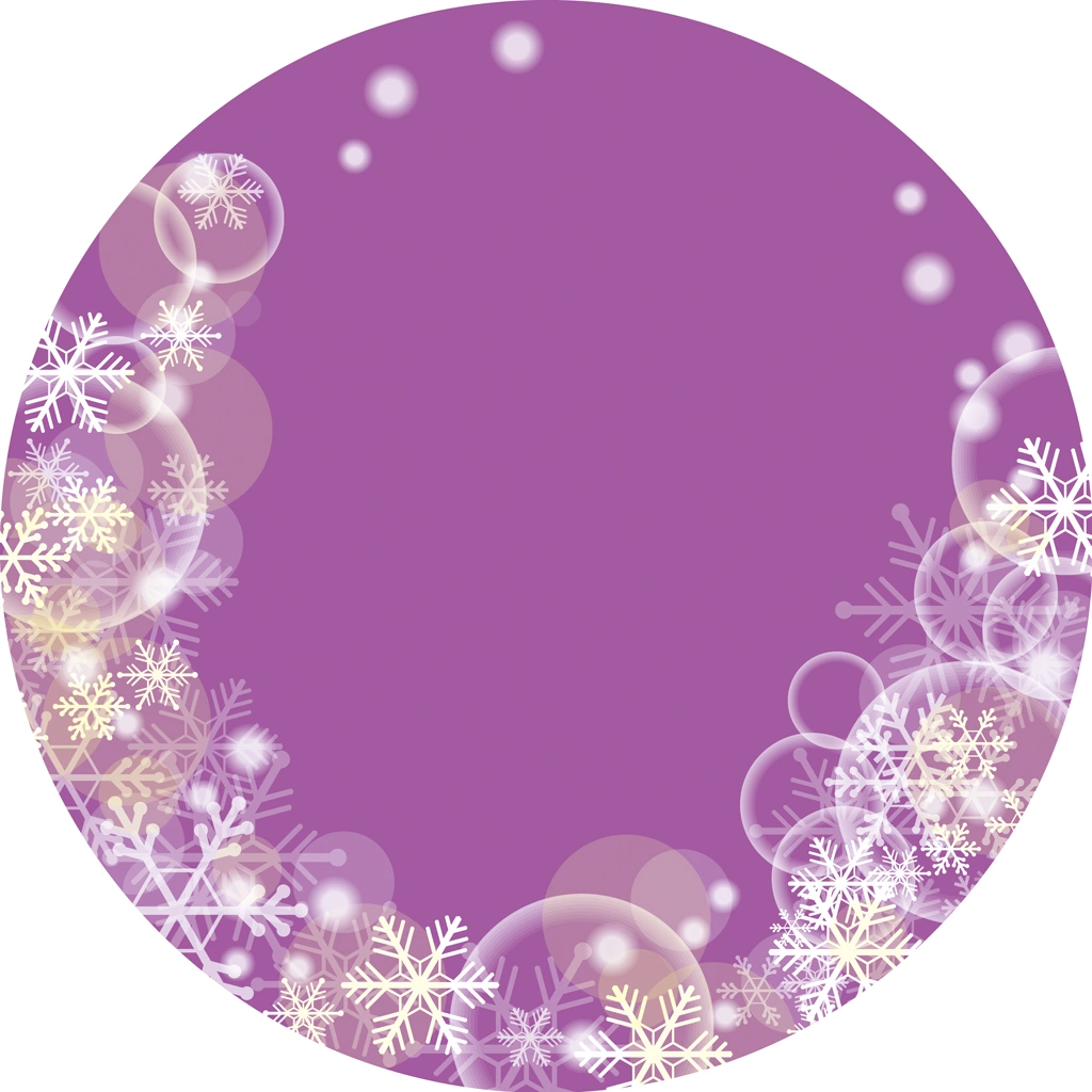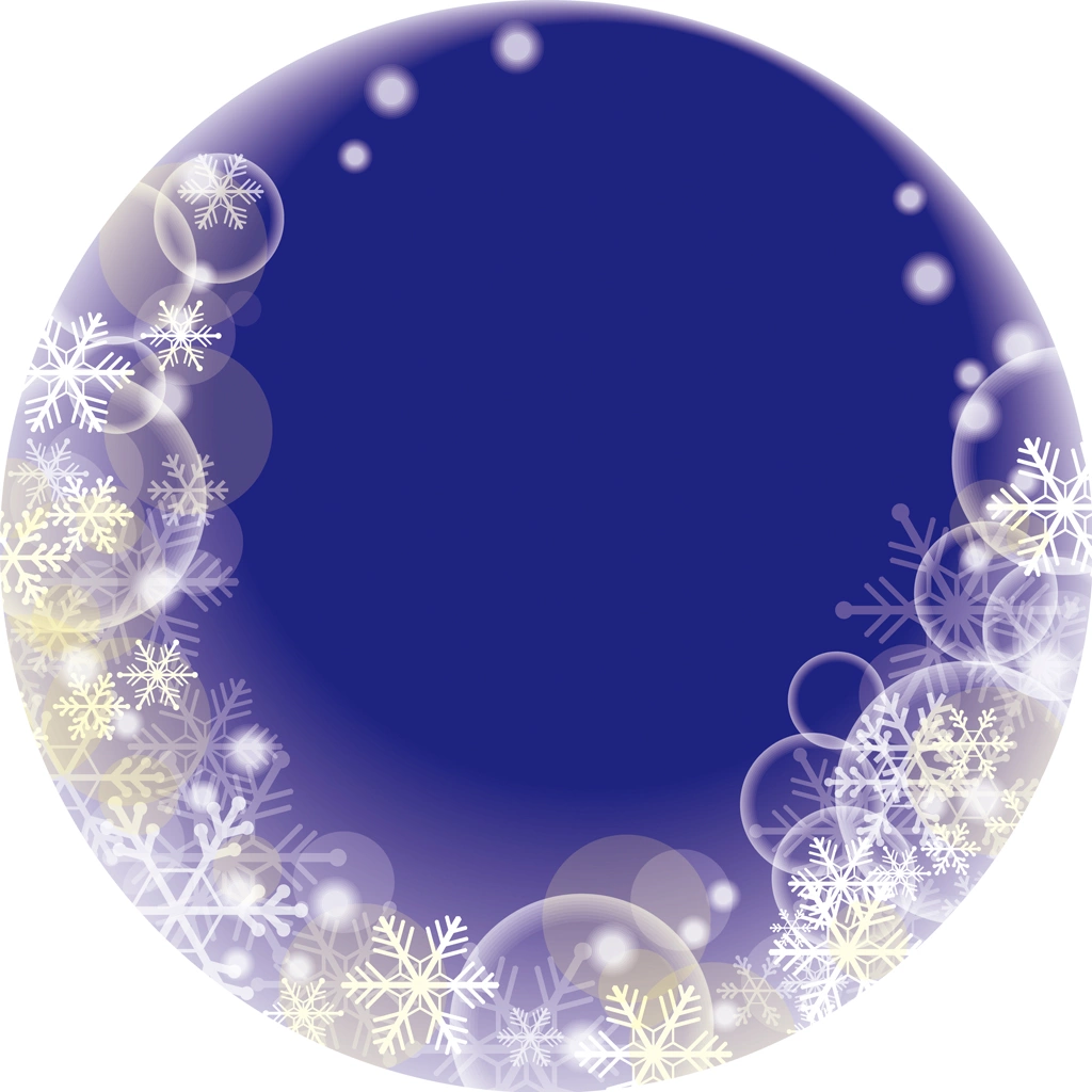 雪の結晶と円フレームの背景イラストとベクター