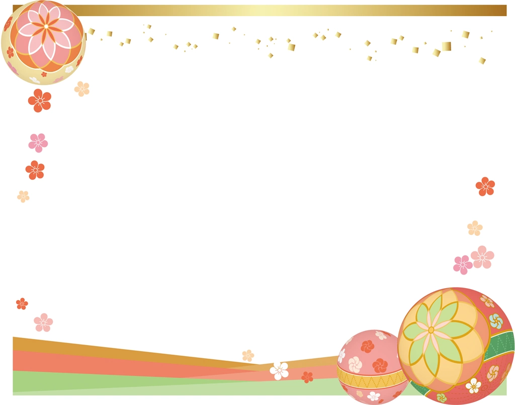 手鞠の和風フレームの背景イラストとベクター