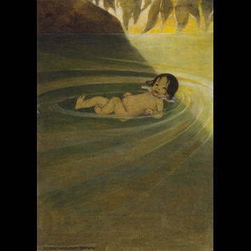 「水の子どもたち 挿絵 #3 (水面に浮かんでいる水の赤ちゃんになった煙突掃除夫トム)」 ジェシー・ウィルコックス・スミス