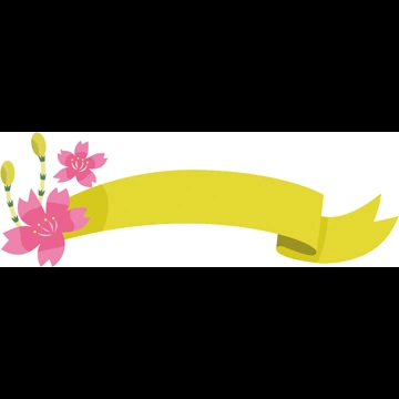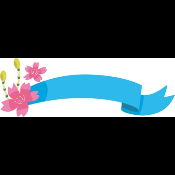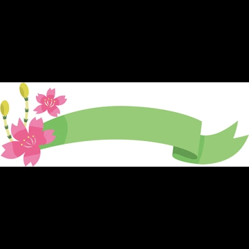 6種類の桜の花と土筆とタイトルリボンのイラストとベクター