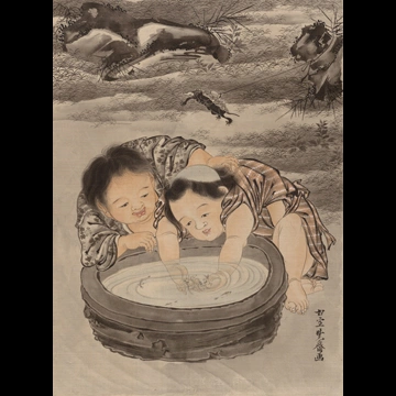 「金魚と遊ぶ小童図」 河鍋暁斎 (1888年)