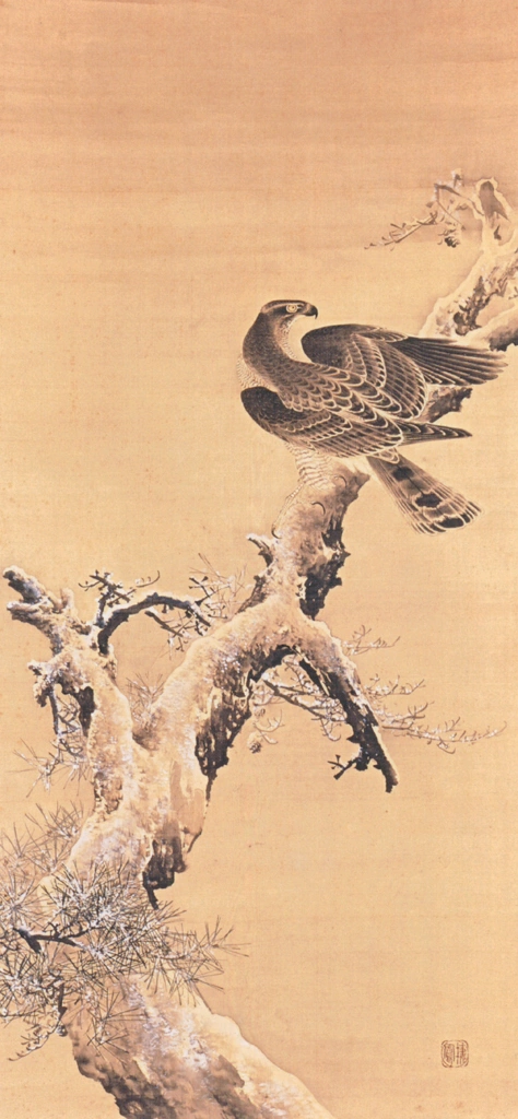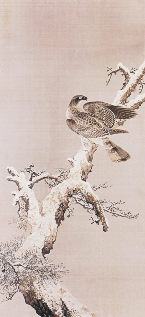 Download Button   「雪中蒼鷹図」 竹内栖鳳 (1893年頃)