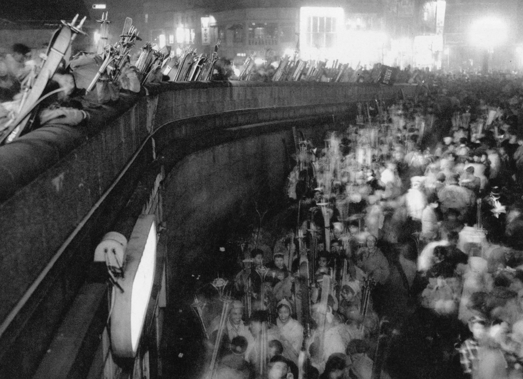 Download Button   「スキーヤー (連休前夜の上野駅)」 大川定夫 (1955年1月18日)